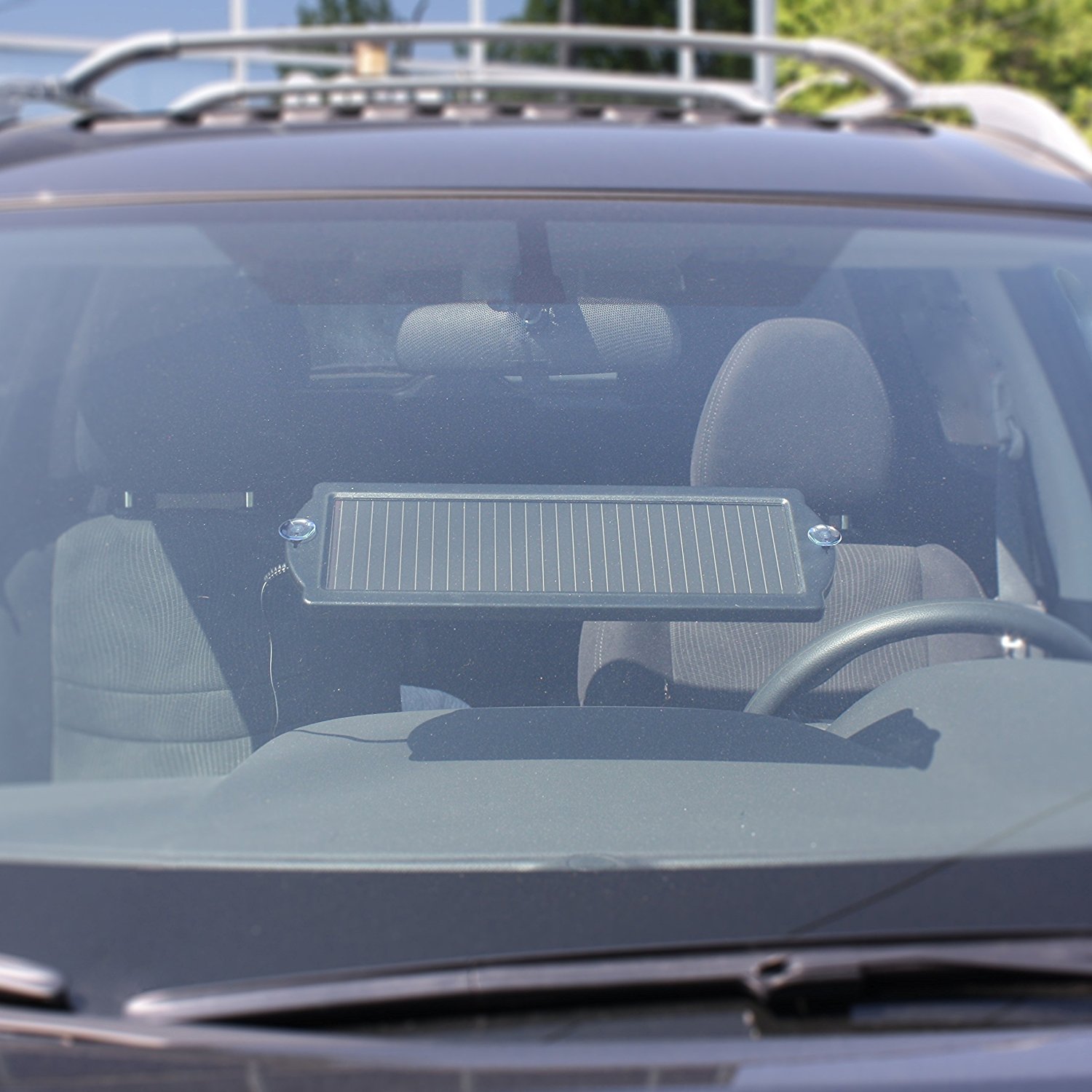Inside Garage Window.When you store your vehicle for a long period you can use the solar battery maintainer. It will keep your battery charged.