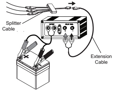 Next, it is time to connect the splitter cable to the extension cable. After that add the extension cable to the charge controller.