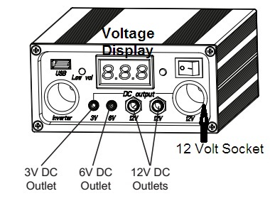 It comes equipped with the controller box and a 5 volt USB port. The port is for charging small appliances like cell phones and tablets et cetera. A 3 volt, 6 volt as well as a 12 volt outlet is part of the kit.